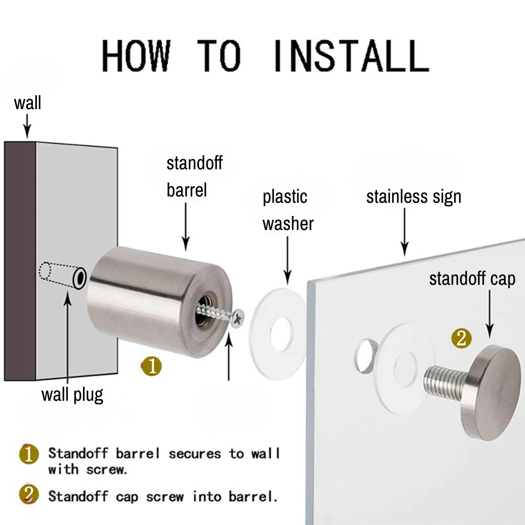 - Stand off mounts, supplied to elevate the logo off the wall creating depth