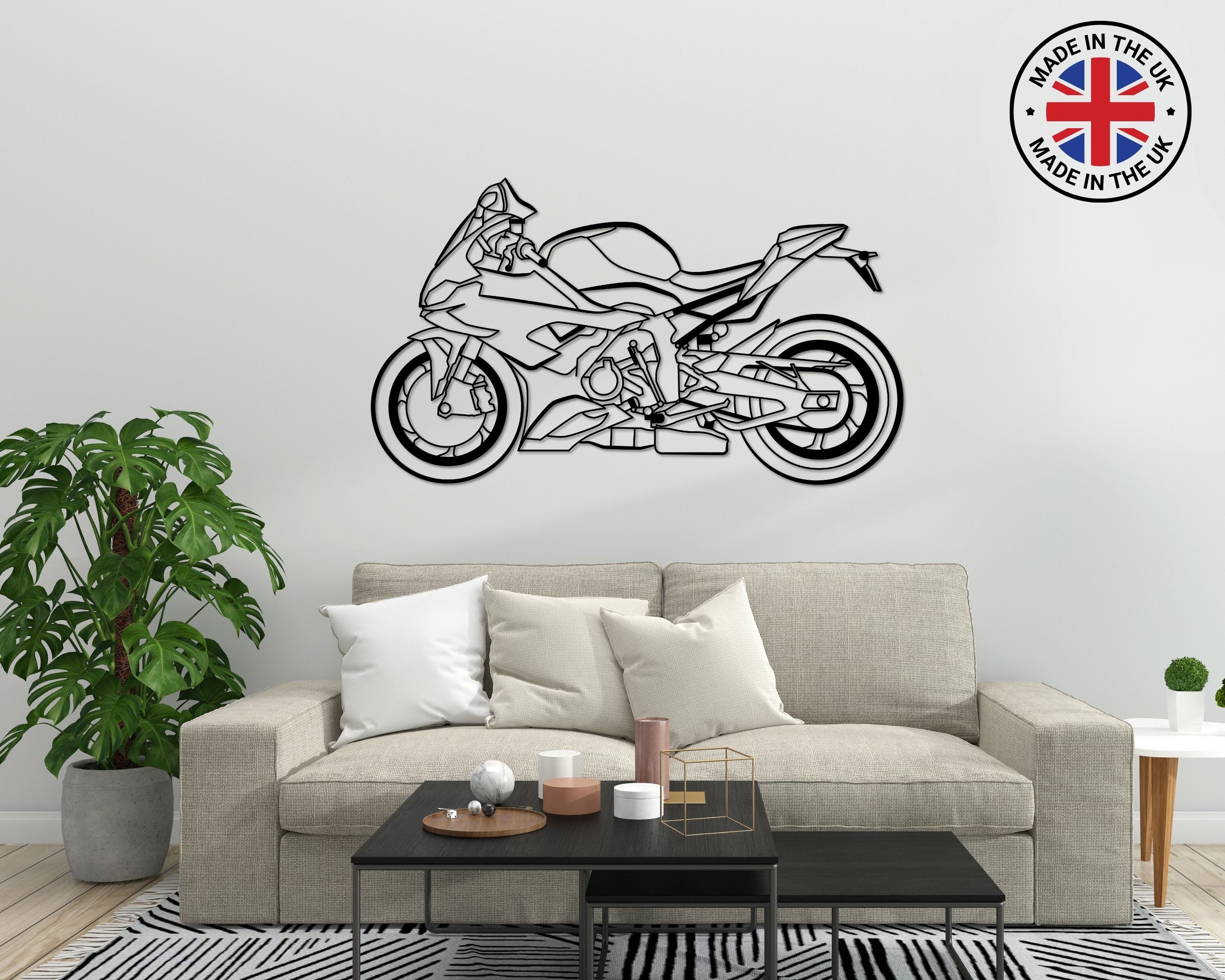 This BMW GS 1250 silhouette gives your space an exclusive look that will catch any automotive enthusiast's attention