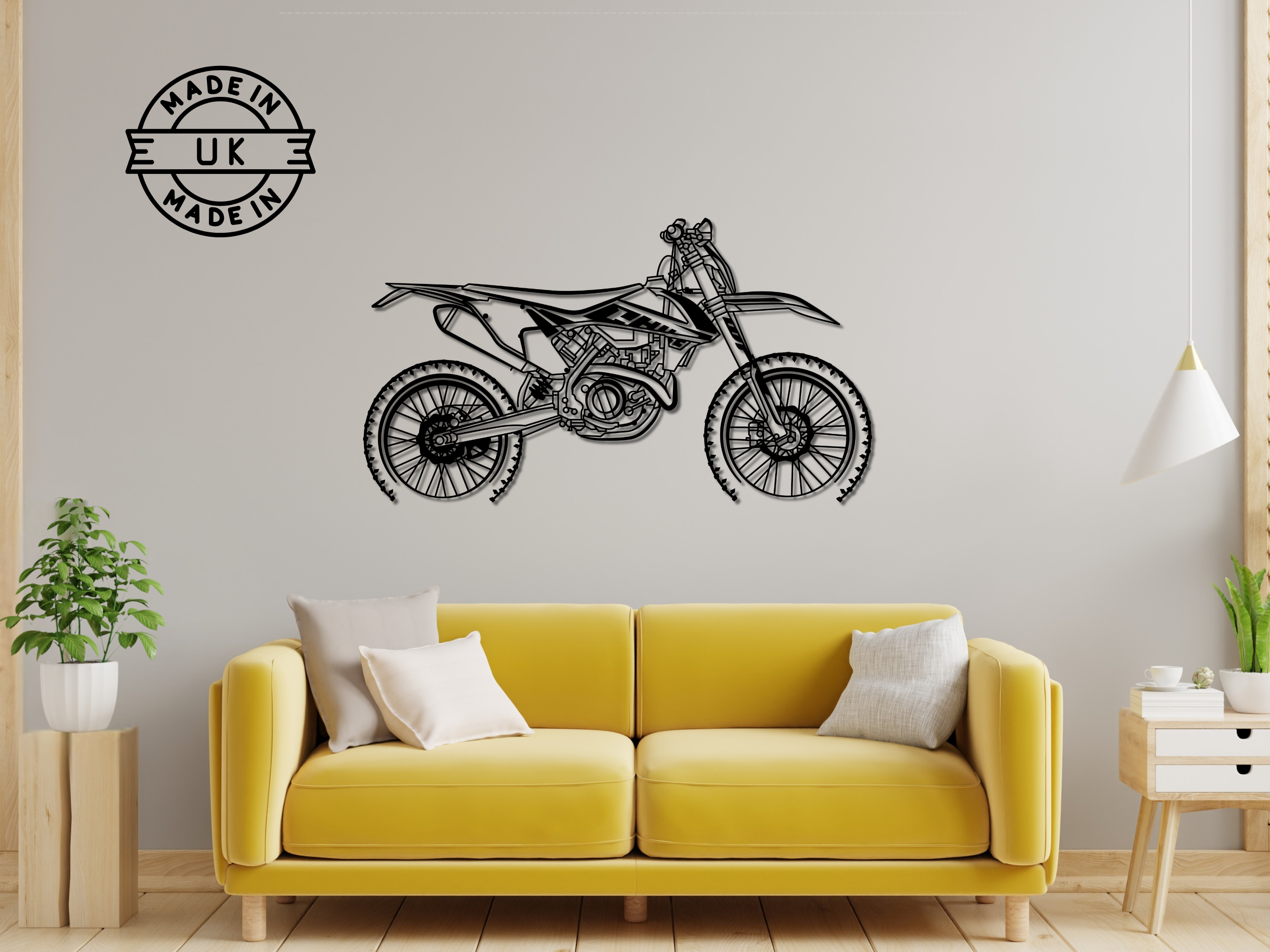 Please provide us with a photo or Bike model to design and we will create it within 24 hours. We will not stop until you are completely satisfied with the design. Then, anticipate a 1-2 week wait for a beautifully crafted piece of automotive art, made from 2mm thick steel and powder coated in a satin black finish. This makes for a polished product that would make a unique and thoughtful gift for any motorbike enthusiast, perfect for displaying above their beloved bike.